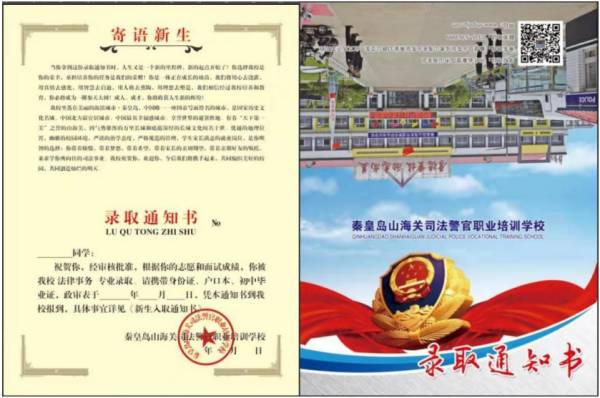 秦皇島山海關(guān)司法警官職業(yè)培訓(xùn)學(xué)校錄取通知書樣板